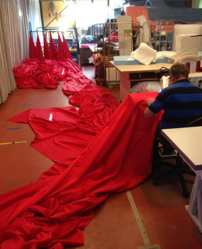 In een van onze ateliers kunnen op aanvraag doeken in elke gewenste maat worden gemaakt. We hebben doeken van molton, molton CS en poly-satijn, welke allemaal een brandveiligheidscertificaat hebben. Onze doeken zijn voorzien van ogen en lussen aan de bovenkant voor een makkelijke ophanging aan een truss of rail.